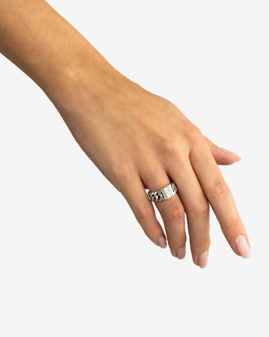 Deze Buddha to Buddha Chain Small Ring is gemaakt van zilver en heeft een uniek ontwerp. De ring heeft een stoere uitstraling door de gedetailleerde schakels en is perfect voor dagelijks gebruik of voor speciale gelegenheden. Draag deze ring alleen of combineer hem met andere sieraden voor een trendy look. Een must-have voor elke sieradencollectie!