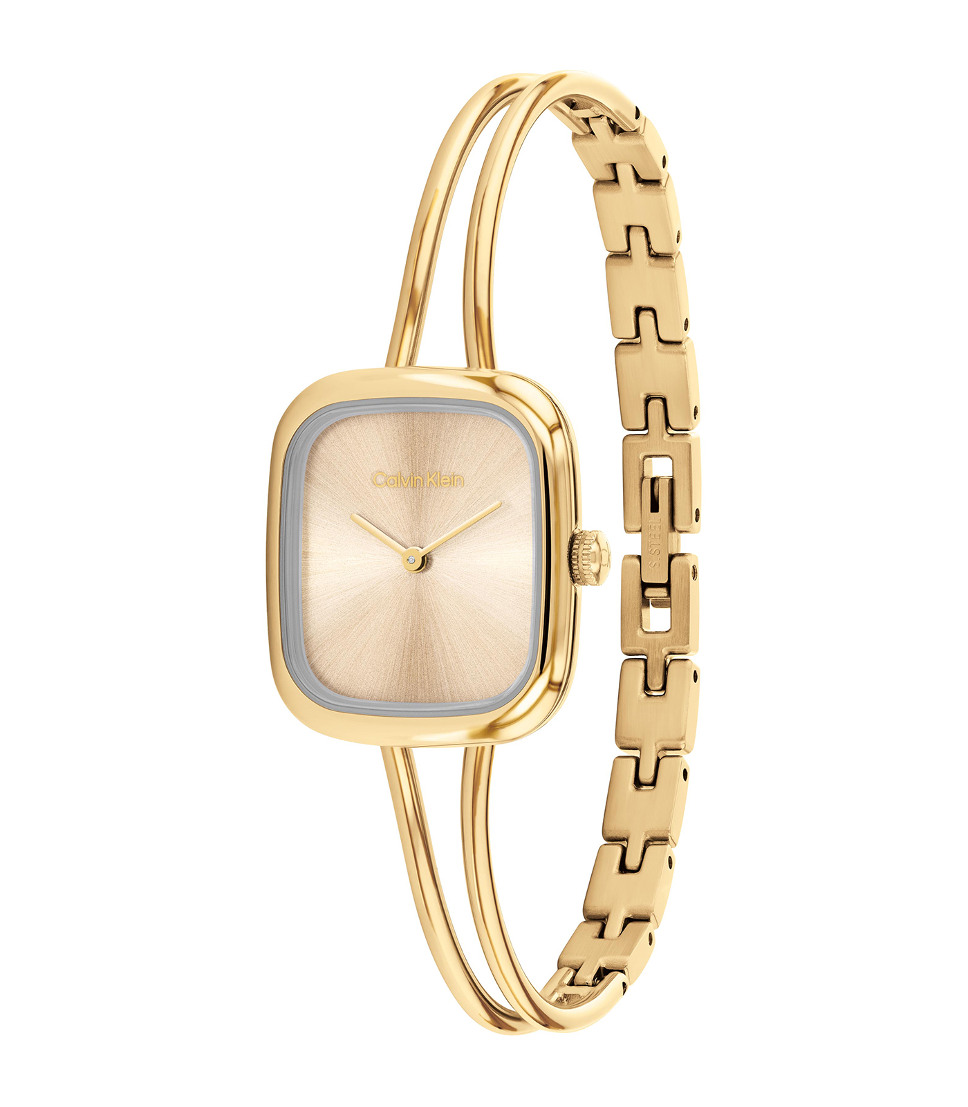 Calvin Klein Dames Horloge model 25100132 is een elegant dameshorloge met een goudkleurige roestvrijstalen kast en band. Het heeft een analoge wijzerplaat zonder index en is nikkelvrij. Dit horloge heeft een quartz uurwerk en is waterdicht tot niveau 3. Ideaal om te dragen bij speciale gelegenheden of als stijlvol accessoire bij dagelijkse outfits.