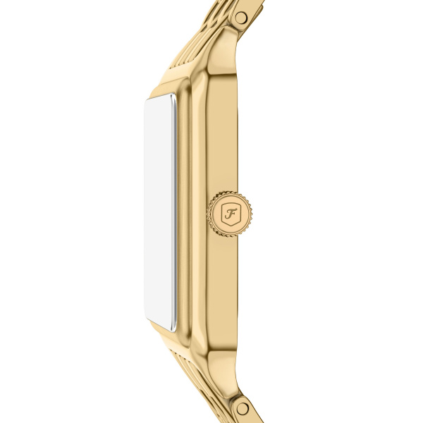 Fossil Dames Horloge ES5417 is een elegant polshorloge met een rechthoekige kast van goudkleurig roestvrij staal en een zwarte wijzerplaat met Romeinse cijfers. Het horloge beschikt over een datumaanduiding en is waterbestendig tot 5 ATM. Draag het als een stijlvol accessoire bij formele en casual outfits. Ideaal voor elke gelegenheid.