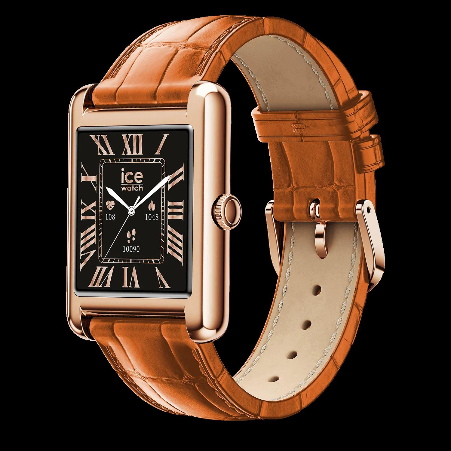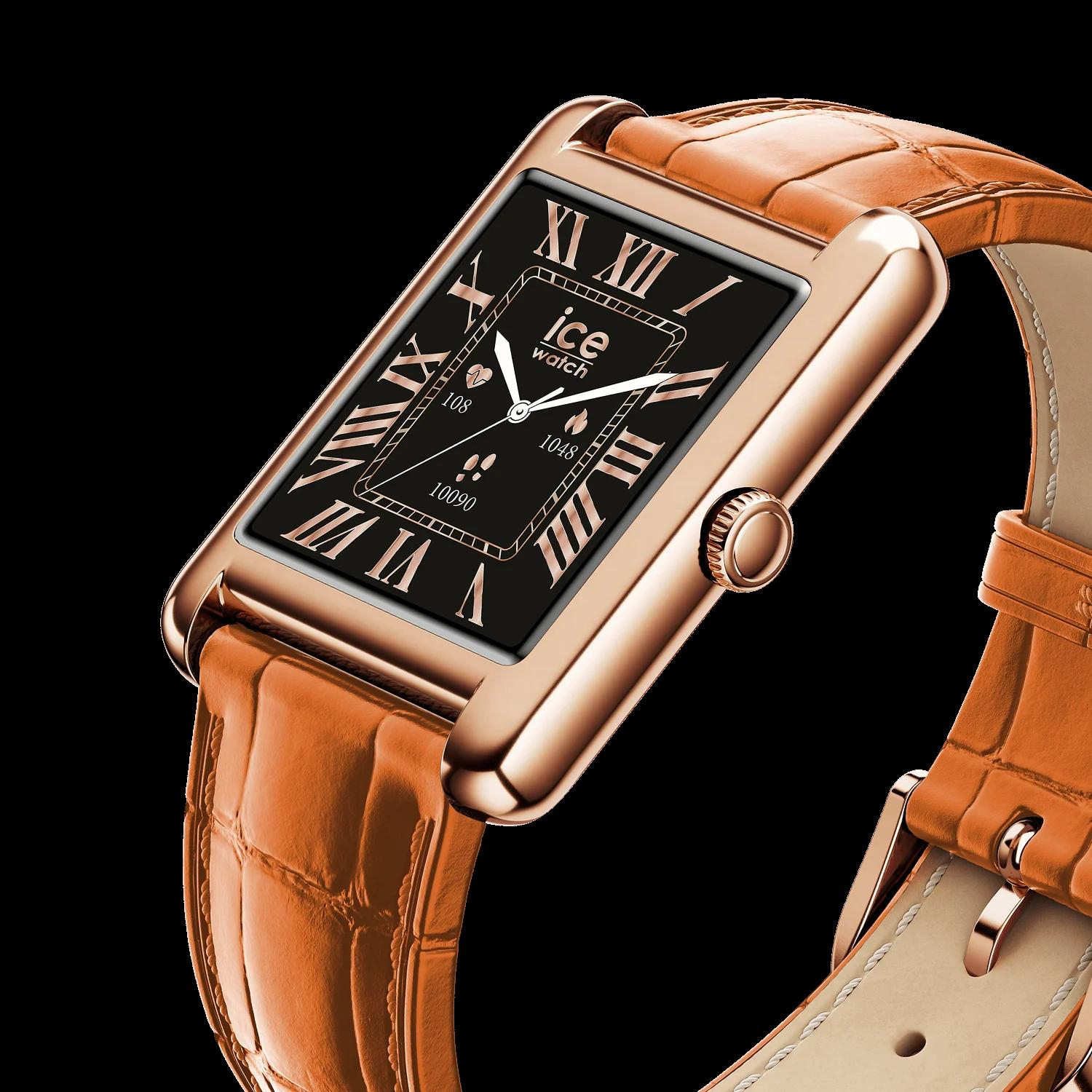 Kies voor een unieke stijl met dit aangesloten horloge op een bruine krokodillenleren band. De verfijnde zwarte wijzerplaat, gesublimeerd door Romeinse cijfers en Rose-Gold wijzers, is perfect afgestemd op de lunette in dezelfde toon voor een sobere, elegante en resoluut tijdloze look. Stoer en toch discreet, het kan elke dag gedragen worden om je persoonlijkheid te laten gelden. Ontworpen voor een actieve, moderne levensstijl, gaat het overal met je mee: volg je activiteiten, ontvang je meldingen en beheer je dag direct vanaf je pols. Dankzij het krasbestendige saffierglas blijft je horloge langer mooi en glanzend. Een praktische en stijlvolle bondgenoot voor iedereen die er graag op zijn best uitziet zonder compromissen.