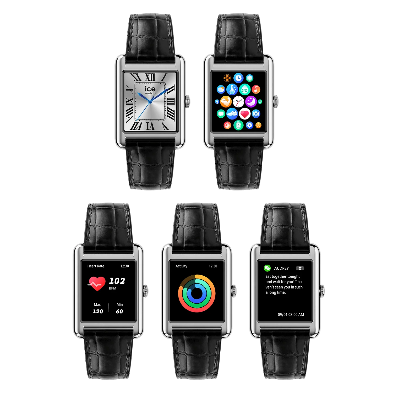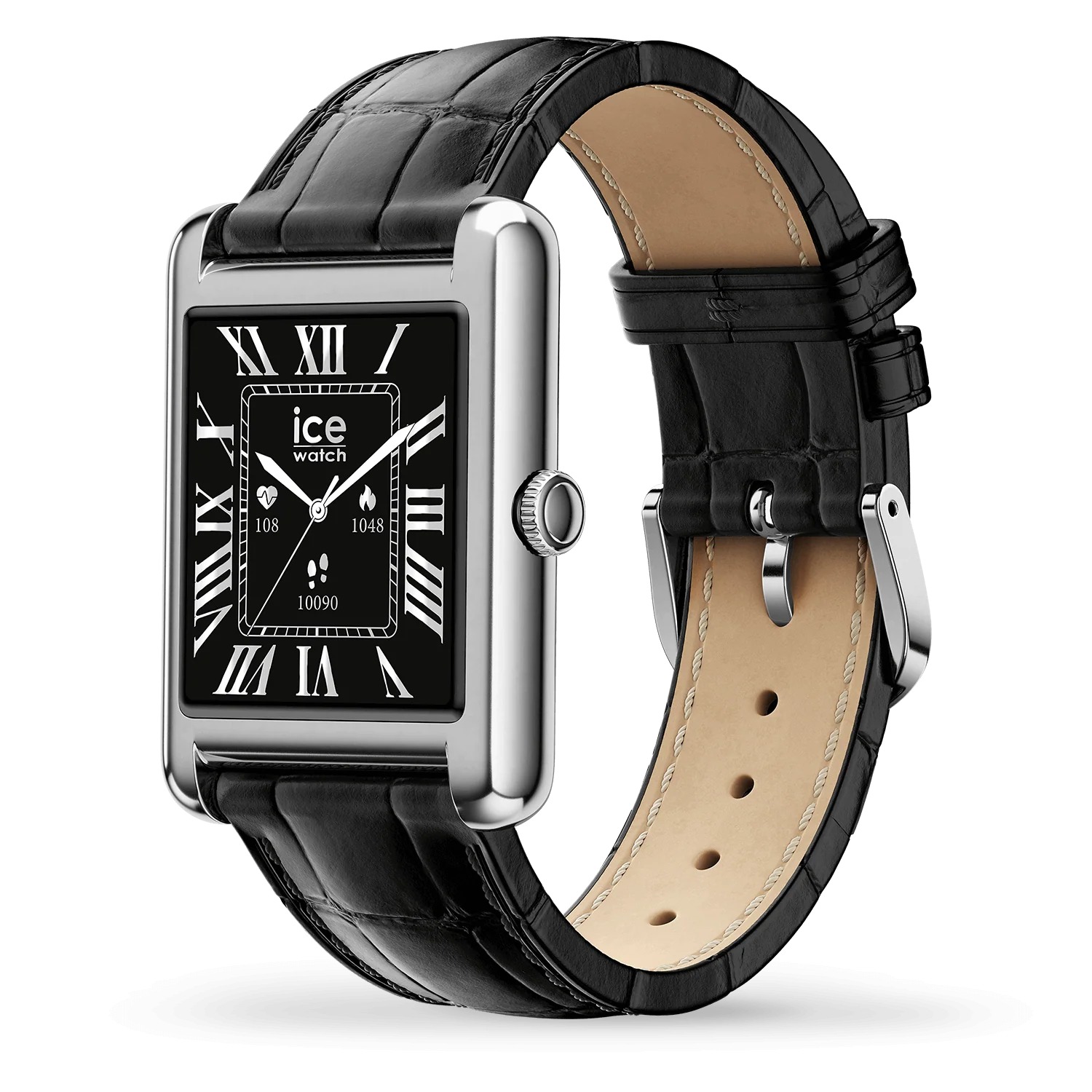 Kies voor een unieke stijl met dit aangesloten horloge op een zwarte krokodillenleren band. De verfijnde zwarte wijzerplaat, gesublimeerd door Romeinse cijfers en zilverkleurige wijzers, is perfect afgestemd op de lunette in dezelfde toon voor een sobere, elegante en resoluut tijdloze look. Stoutmoedig en toch discreet, het kan elke dag gedragen worden om je persoonlijkheid te laten gelden. Ontworpen voor een actieve, moderne levensstijl, gaat het overal met je mee: volg je activiteiten, ontvang je meldingen en beheer je dag direct vanaf je pols. Dankzij het krasbestendige saffierglas blijft je horloge langer mooi en glanzend. Een praktische en stijlvolle bondgenoot voor iedereen die er op zijn best uit wil zien zonder compromissen.