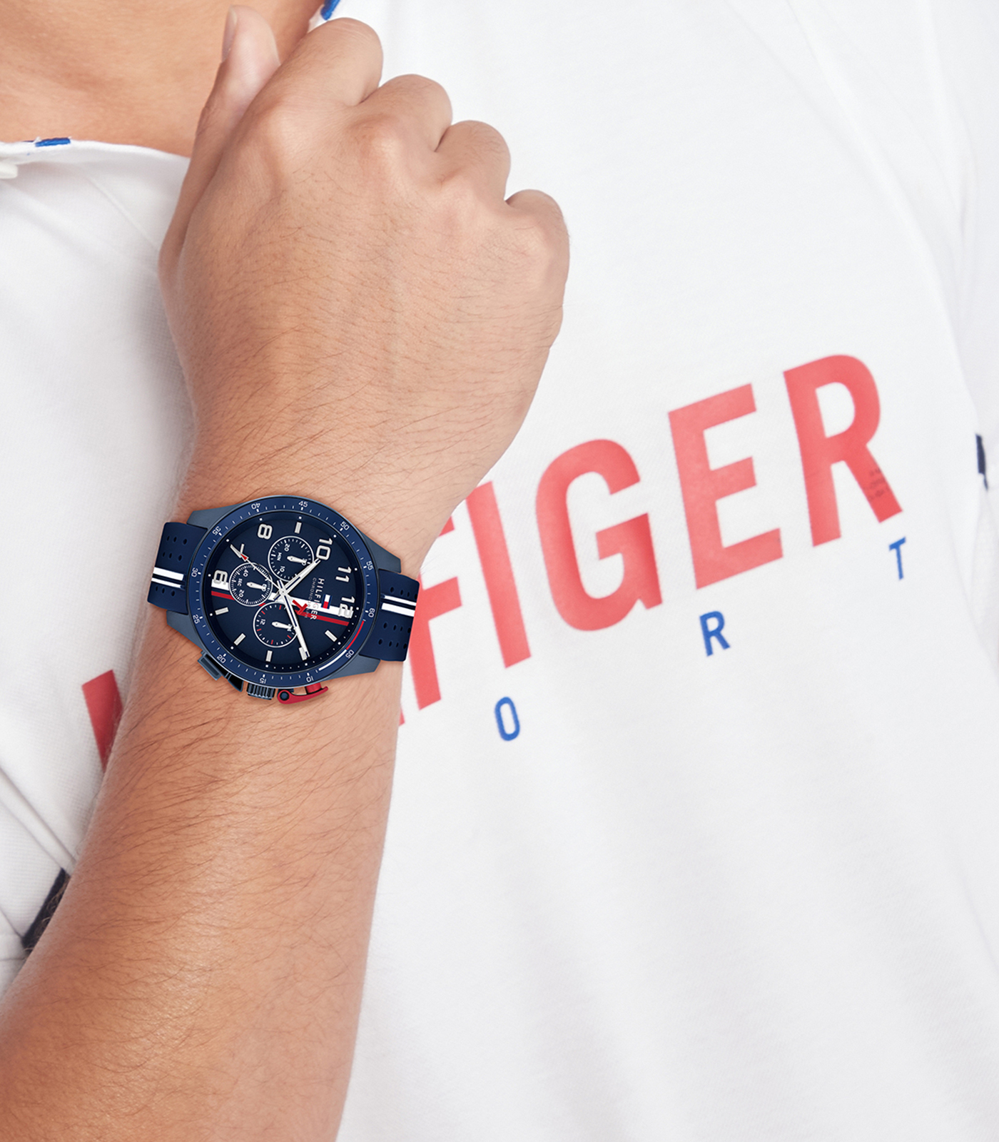 Dit Tommy Hilfiger heren horloge heeft een stijlvol blauw design met een ronde, roestvrijstalen kast en een blauw silicone band. Het beschikt over analoge tijdsweergave, mineraalglas en is waterbestendig tot 5 ATM, perfect voor dagelijks gebruik. Combineer het met zowel casual als formele outfits voor een elegante uitstraling.