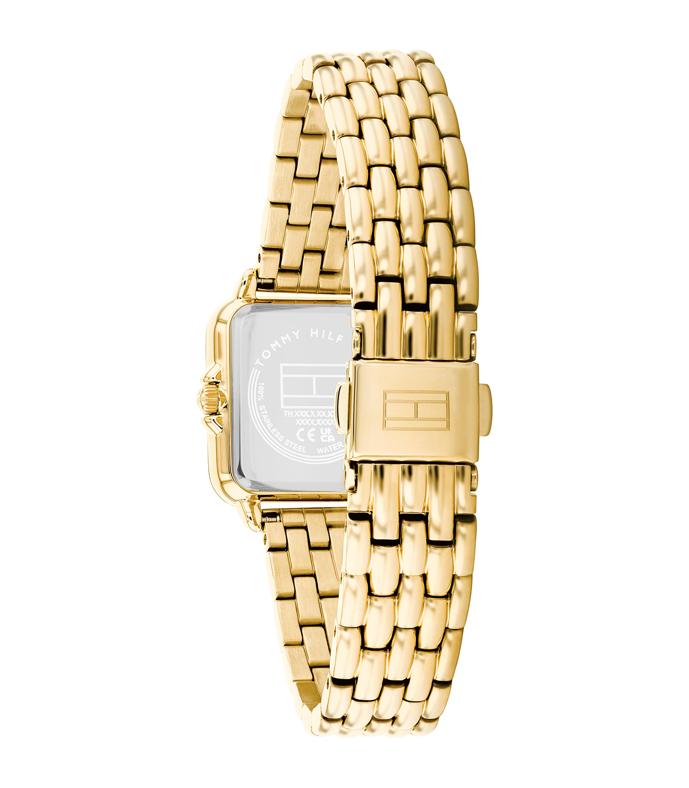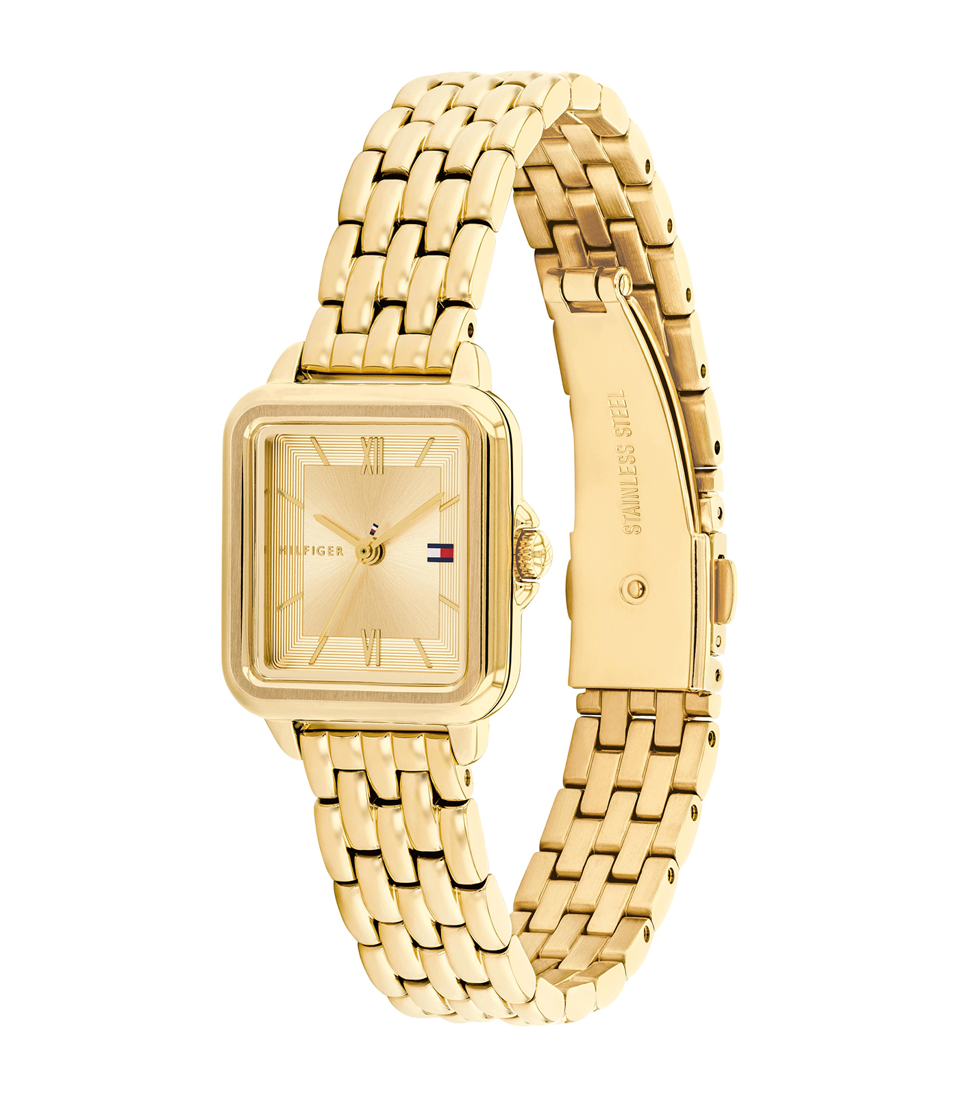 Ontdek de elegante Tommy Hilfiger Dames Horloge model 1782832. Dit stijlvolle polshorloge heeft een roestvrijstalen rechthoekige kast en band, beide goudkleurig. Met een analoge kwartsbeweging en een waterbestendigheid van niveau 3. Geen datum- of lichtfunctie. Ideaal voor dagelijks gebruik en speciale gelegenheden. Maak je outfit compleet met deze tijdloze accessoire!